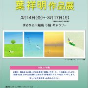 ~光と風の画家~葉祥明作品展 2025年3月14日/カテゴリ: アート 新富町 /作成者: 白井 紀行 カレンダー カレンダーに追加 Timely カレンダーに追加 Google に追加 Outlook に追加 Apple カレンダーに追加 他のカレンダーに追加 XML ファイルとしてエクスポート 日時: 2025年3月14日 @ 10:00 – 2025年3月17日 @ 17:00 Asia/Tokyo タイムゾーン 2025-03-14T10:00:00+09:00 2025-03-17T17:00:00+09:00 場所: まるひろ川越店6階ギャラリー 川越市新富町2丁目6−1 お問い合わせ: 丸善川越丸広店 イベントのサイト アート 新富町 美しく心温まる情景を描いた絵本や風景画で人気を博す作家・葉祥明の原画・版画を、新作を中心に展示販売いたします。爽やかで優しいグラデーションに彩られた癒しの作品の数々を、会場にてぜひご高覧くださいませ。〈お買上げ特典〉会期中、額装品をお買上げのお客様へ特製イラストカードを進呈いたします。原画をお買上げのお客様には後日作家が裏板にサインをお入れいたします。 https://events.koedo.info/wp-content/uploads/sites/9/2024/11/039fc4a40dead8466ae042459a42c868.jpg 1014 720 白井 紀行 https://koedo.info/wp-content/uploads/2018/02/kmmlogo.jpg 白井 紀行2025-03-14 10:00:512025-03-11 07:45:22~光と風の画家~葉祥明作品展